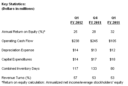 SAN JOSE, Calif., July 20, 2011 -- Xilinx, Inc. (Nasdaq: XLNX) today announced first quarter fiscal 2012 sales of $615.5 million, up 5% sequentially from the prior quarter and up 3% from the same quarter of the prior year. First quarter net income was $154.4 million, or $0.56 per diluted share.